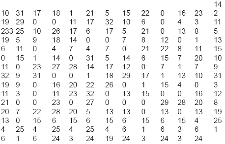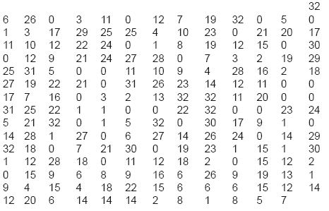 … 18, 20, 5, 29, 2, 9, 14, 1. Далее так же поступаем с третьим числом 7 и таблицей 3, начиная считать с «семи». Получаем: …13, 30, 25, 1, 6, 19, 27, 19,