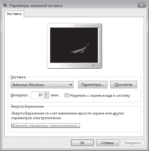 Рис. 2.12. Окно настройки параметров экранной заставки