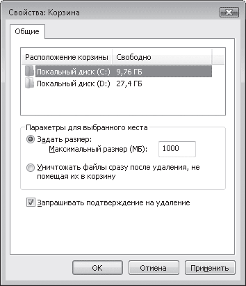 Рис. 3.19. Окно настройки свойств Корзины
