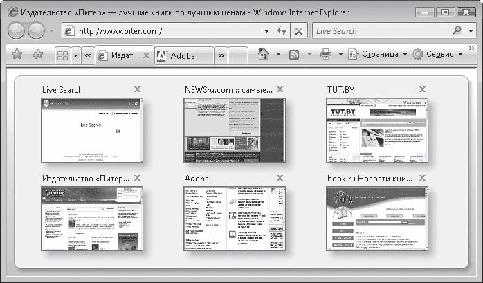 Рис. 4.9. Навигация по вкладкам с помощью эскизов