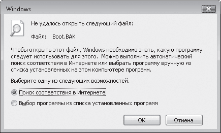 Не распознанный системой тип называется незарегистрированным. При попытке открыть файлы незарегистрированных типов всегда появляется окно, изображенное на рис. 5.16.