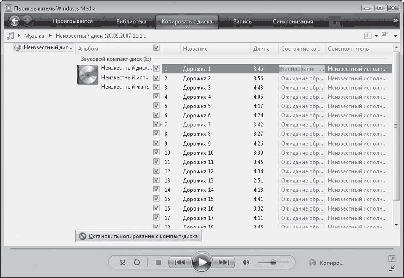 Рис. 6.15. Процесс копирования содержимого музыкального диска