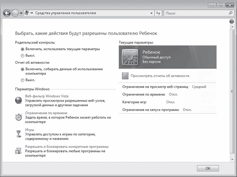 Рис. 7.3. Окно настройки параметров родительского контроля