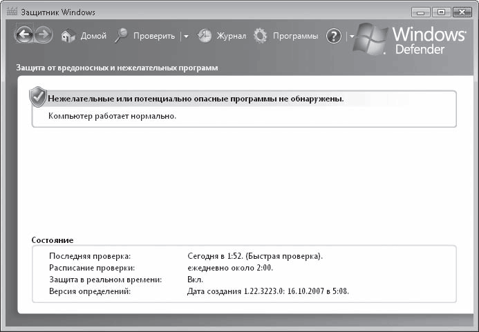 Рис. 7.18. Окно Защитника Windows
