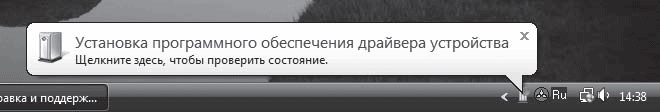 В составе Windows Vista есть большое количество драйверов для различных устройств. При подключении к компьютеру нового оборудования система сразу же начнет поиск драйверов для него в своей базе, о чем будет свидетельствовать сообщение в области уведомлений (рис. 8.8).