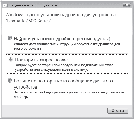 Рис. 8.8. Сообщение о попытке найти драйвер для нового устройства
