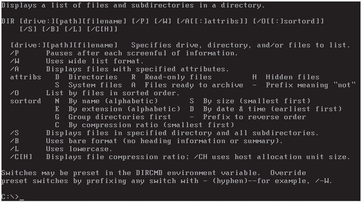 Рис. П.1. Текстовый интерфейс MS-DOS