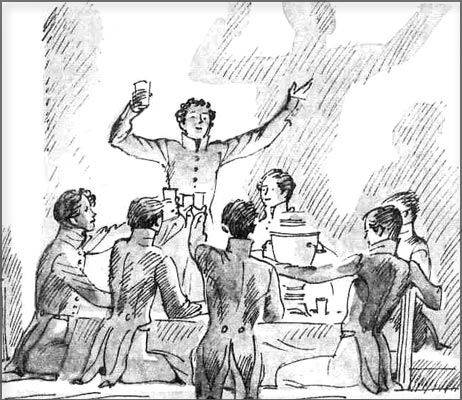 Выпили ещё за Лицей, потом за дружбу вечную, потом за веселье. Жанно никак не мог понять, сколько людей в комнате. То ему казалось, что Пушкиных двое, то, что Тырков исчез.