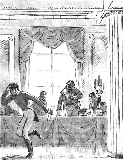 И ратник молодой вскипит и содрогнётсяПри звуках бранного певца.Державин поднялся и протянул обе руки к Пушкину. Пушкин дико посмотрел кругом и вдруг заметил, что в зале сидит множество людей, что за столом экзаменаторы, а у Державина на щеке слеза.