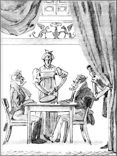 Спектакль едва не отменился. Но в конце концов решили помириться с тем, чтоб позвать слуг.