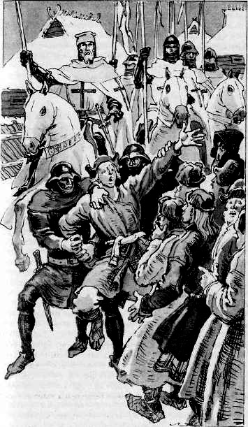 — Дерзкий монах! — гневно воскликнул комтур. — Уж я тебе покажу, как оскорблять орден и рыцарей! Свяжите его!