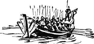 Русские схватились за луки, прикрылись щитами, но печенеги уже были везде: вверху и внизу, справа и слева. Одни, кинувшись вброд, взбирались на торчавшие из воды камни, другие же устремились к ладьям вплавь.