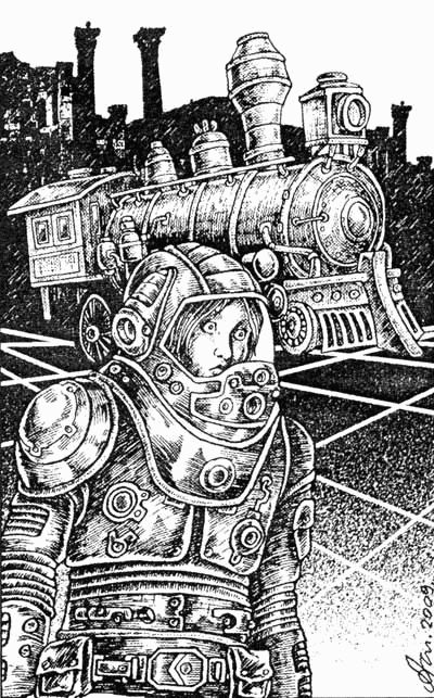 Эмелин вышла из пассажирского вагона с открытым верхом. В голове поезда монашеского вида инженеры из школы Отик проверяли клапаны и поршни огромного локомотива, работающего на нефти. Эмелин попыталась не вдыхать дым и пар, которые поднимались из его трубы.