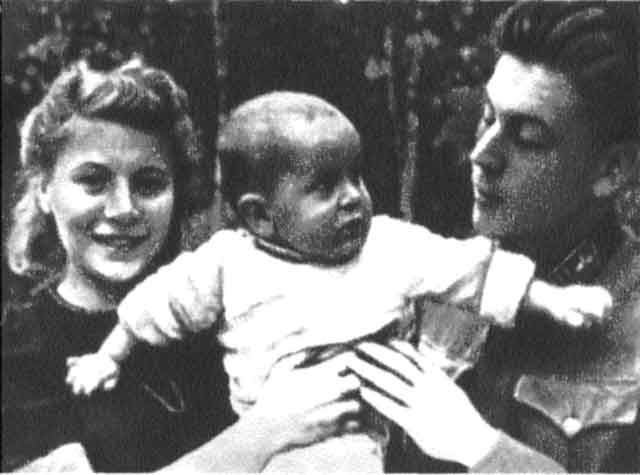 Полковник В. И. Сталин с женой Галиной Бурдонской и сыном Александром. 1942г.