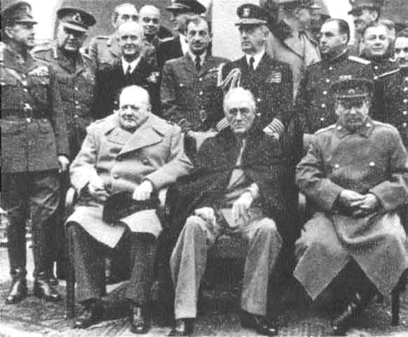 Ялтинская конференция. Уинстон Черчилль, Франклин Рузвельт, Иосиф Сталин. Февраль 1945 г.