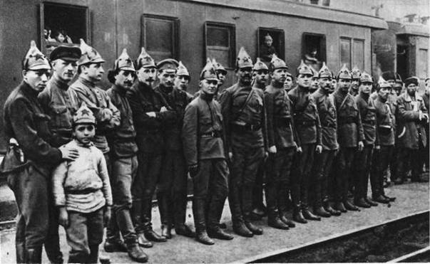 М. Н. Тухачевский и Г. К. Орджоникидзе у захваченного Красной Армией поезда Коледина