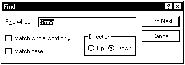Мы расскажем о стандартных диалоговых панелях Find и Replace в одной из следующих книг серии “Библиотека системного программиста”, которуые мы посвятим Microsoft Visual C++ и библиотеке MFC.