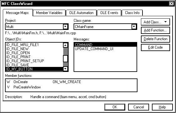 Соответствие строковых ресурсов кнопкам панели управления достигается за счет присвоения им одинаковых идентификаторов. Так, для нашего примера вы можете найти в файле ресурсов следующие текстовые ресурсы (мы привели только выборку из строковых ресурсов приложения):