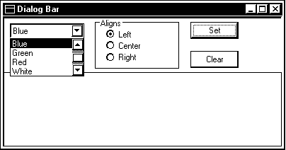 Панель управления не позволяет использовать клавишу <Tab> для перемещения фокуса ввода между кнопками. Однако если вы размещаете на панели управления дополнительные органы управления, для них можно установить стиль WS_TABSTOP. Тогда вы получите возможность перемещать фокус ввода между ними, нажимая клавишу <Tab>. Мы установили стиль WS_TABSTOP для двух дополнительных органов управления - текстового редактора и списка combo-box.