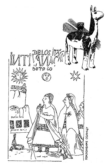 Поклонение солнцу. Рисунок из хроники Гуамана Помы