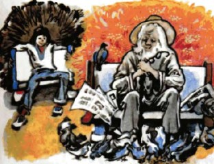 Во дворе Павлик заприметил старого-престарого старичка. Тот сидел на скамейке, обеими руками опершись на палку с набалдашником. Звали его Евтихий Евтихиевич.