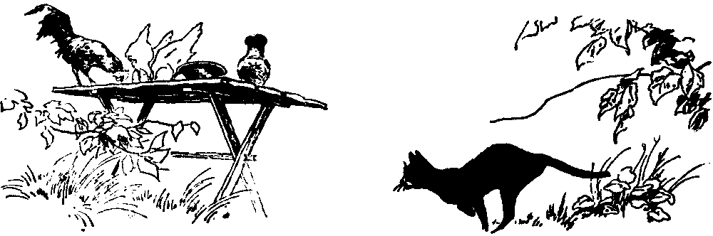 Кот дрожа от негодования, прокрался к курам и с коротким победным криком прыгнул на стол.