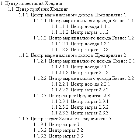 Создана финансовая структура и представлена во всех необходимых форматах. Заключительный шаг – подготовка Положения о финансовой структуре, которое будет в дальнейшем являться регламентным документом, определяющим порядок ее создания и изменения, и содержать текущее состояние. Для этого создается текстовый документ, соответствующий своим форматом принятым на предприятии стандартам и содержащий все полученные в процессе работы результаты.