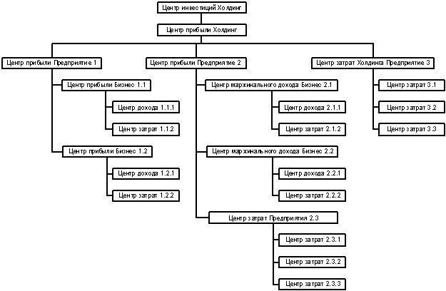 Финансовая структура является сложной системой, несмотря на ее внешне обманчивою простоту, так как “вбирает” в себя всю оргструктуру, вследствие чего и возникает возможность совмещения в одной структурной единице (ЦФО) ответственности за выполнение функциональных обязанностей и финансовой ответственности одновременно. Это, соответственно, открывает широкие возможности управления – сначала спланировать, а затем проконтролировать исполнение деятельности, совмещенной с финансовой ответственностью, причем на всех уровнях (снизу доверху), во всех разрезах (по функциям, продуктам, регионам) и на всех этапах (от закупок до продаж).