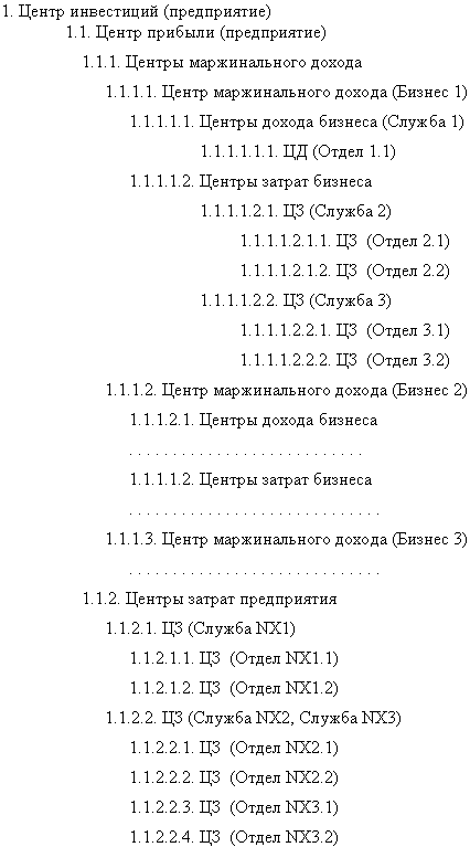 При создании финструктуры стоит задача – за что и какую ответственность руководство хочет установить? Как было видно из вышесказанного, создание ЦФО основано на классификации функциональной деятельности подразделения. А подразделение может быть предназначено для решения самых разнообразных задач. Что означает: ответственность ЦФО может лежать в широком диапазоне – за исполняемую функцию, например, за производство, продажи, закупки. Или за продукт – его производство и реализацию. Может быть ответственность за технологический передел, например, добыча руды – обогащение – выплавка металла и т.д. Или за регион, филиал, представительство в других городах или районах. При этом уровень ответственности может быть установлен от ответственности за доходы (или затраты) до ответственности за отдачу на инвестиции. Ответственность может быть как повышена, так и понижена.