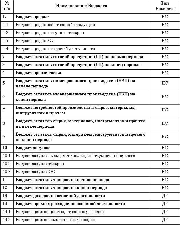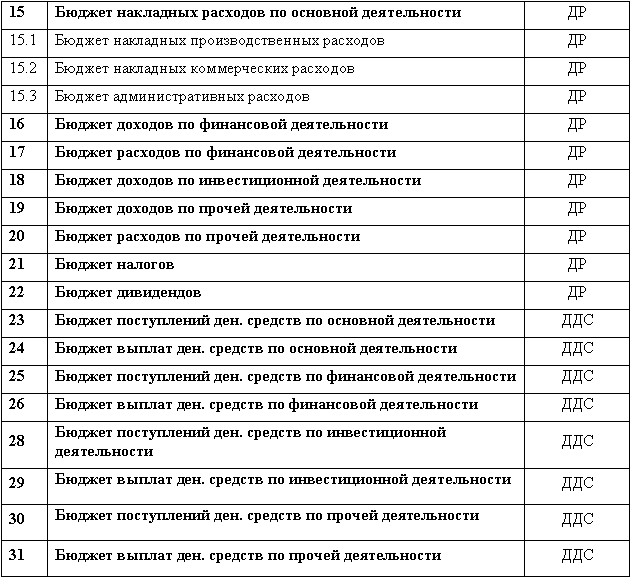 Бюджетная структура – система функциональных бюджетов предприятия, по которой происходят последовательное планирование и учет результатов хозяйственной деятельности всего предприятия.