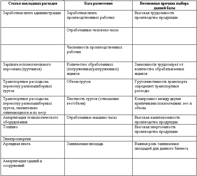 В управленческом учете могут быть выбраны любые базы, соответствующие управленческой необходимости данного предприятия.