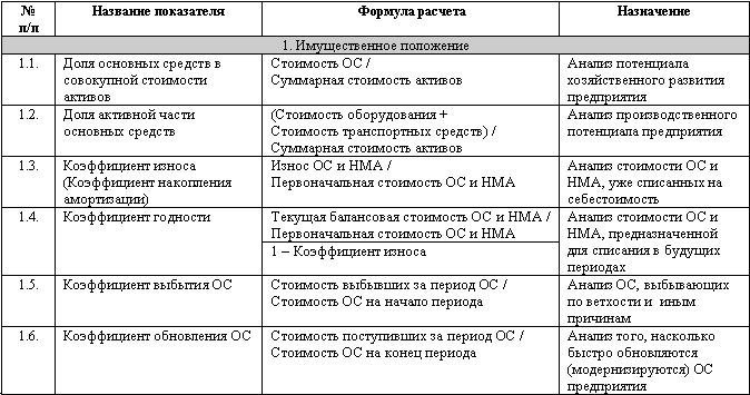 Примерный перечень показателей для анализа хозяйственной деятельности предприятия
