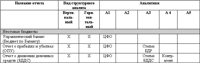 Перечень отчетов для проведения структурного анализа