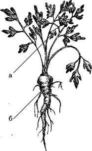Рис. 10. Корневая петрушка: а – листья, б – корень