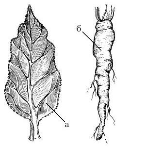 Корневая система мощная, ветвящаяся, с образующимися на ней почками. Стебель прямостоячий, прикорневые листья крупные, продолговатые (рис. 16).