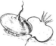 Корнеплод у редьки (рис. 23) круглый или длинный, белой или розовой, иногда фиолетовой, желтой, пестрой, серой и черной окраски, весом от 50 г до 2 кг.
