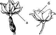 Рис. 24. Цветки огурца: а – женский, б – мужской