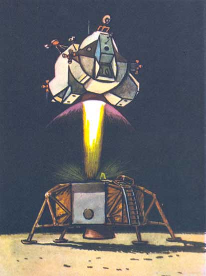 У американских космонавтов всё проходит благополучно. Они производят стыковку с основным блоком, перелезают к Майклу Коллинзу. А взлётную ступень отбрасывают. Она больше не нужна.