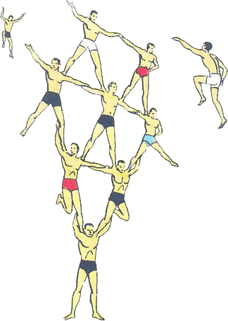 Один держит на себе пирамиду из пятнадцати человек. Другой прыгает на шесть метров в высоту и по пути выделывает в воздухе всякие фокусы. Ведь он летит целых шесть секунд!