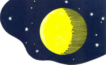 Смотрите! На том месте, где освещенная часть Луны переходит в теневую, видны неровности. Луна не гладкая, как мячик, а шероховатая. Точно вываляна в песке.