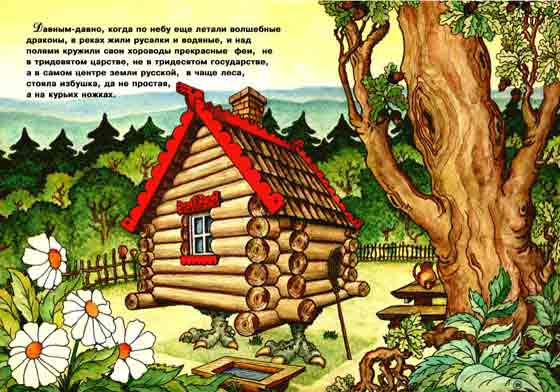Давным-давно, когда по небу летали волшебные драконы, в чистых реках, от которых еще не пахло мазутом, жили русалки и водяные, и над полями кружили свои хороводы прекрасные феи, не в тридевятом царстве, не в тридесятом государстве, а в самом центре земли русской, в чаще леса, стояла избушка, да не простая, а на курьих ножках.