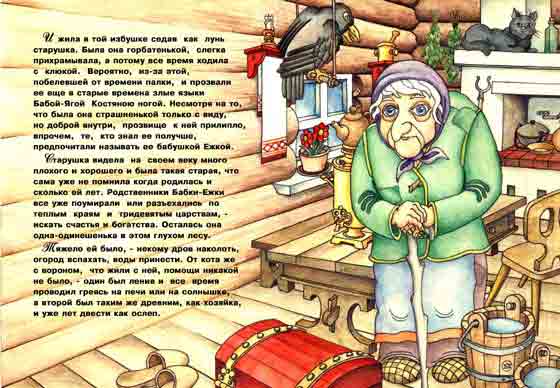 Тяжело ей было жить – некому дров наколоть, огород вспахать, воды принести. От кота же с вороном, что жили при ней, пользы никакой не было – один был ленив и время проводил, греясь на солнышке или на печи, а второй был таким же древним, как сама хозяйка, и уже лет двести как ослеп.