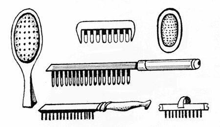 Для регулярного ухода за шерстью необходимы щетка из натуральной щетины, пластмассовые и металлические гребни, кусочек шелковой ткани или мягкой замши, вата, шампунь, полотенце, медицинский спирт, специальная присыпка и некоторые другие принадлежности.