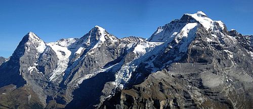 Вид на Айгер, Мёнх, Юнгфрау с Мэнлихена. Бернские Альпы