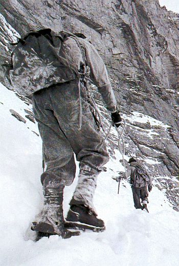 Кто когда-либо слышал о кандидате на покорение Северной Стены Айгера, спящем в гостиничном номере? Уловка сработала великолепно. У Хекмайера и Фёрга было с собой лучшее, самое современное снаряжение. Они были фактически столь же бедны, как и мы, но нашли спонсора для восхождения заранее и поэтому впервые в жизни получили возможность покупать все, что душе угодно в лучшем спортивном магазине Мюнхена, и даже изготовить снаряжение по спецзаказу.