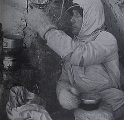 Да, мы были весьма счастливы. Это огромная Стена привела наши жизни к общему знаменателю. После готовки в течение многих часов, мы натянули на себя спальные мешки и попробовали найти максимально удобное положение, так, чтобы удалось, по крайней мере, подремать. Было замечательно встречать приход ночи в сухой одежде. Мы находились на высоте примерно, на 1200 метров выше снежников у основания стены; если бы один из нас упал с этой высоты, он бы точно не выжил. Но кто думал о падении? Это был хороший бивуак. Боль в мышцах и дискомфорт не мешали потоку наших мыслей.