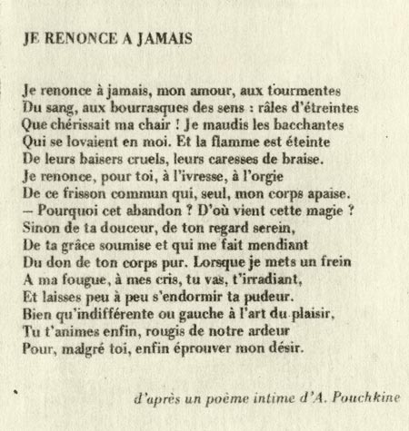 Роман д'Антес. Перевод стихотворения А. С. Пушкина «Нет, я не дорожу мятежным наслажденьем…».