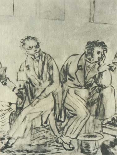 Н. де Куртейль. Пушкин и Вяземский в Архангельском. Фрагмент.