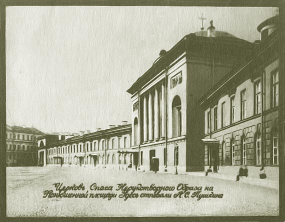 Церковь Спаса Нерукотворного Образа на Конюшенной площади. Здесь отпевали А. С. Пушкина