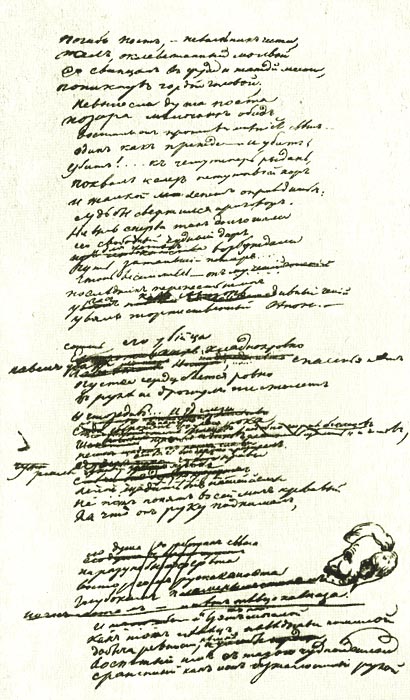 Черновой автограф стихотворения «Смерть Поэта» с профилем Л. В. Дубельта.